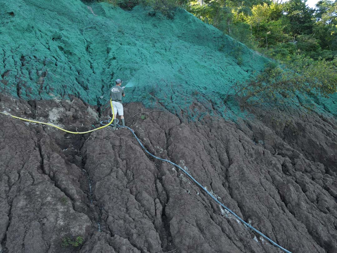 Often, yes—especially where vegetative stabilization is appropriate. Hard walls can be costly and may worsen erosion nearby; hydromulch works with natural processes to hold soil in place. For high-energy shorelines or very steep banks, hydromulch can be paired with other erosion-control measures.